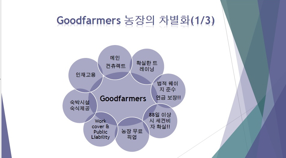 ✘ 여타 다른 지역의 농장과는 차별화된 근로자 트레이닝 및 관리 정책에 따라 근로자의 근로 만족지수가 상대적으로 높습니다.